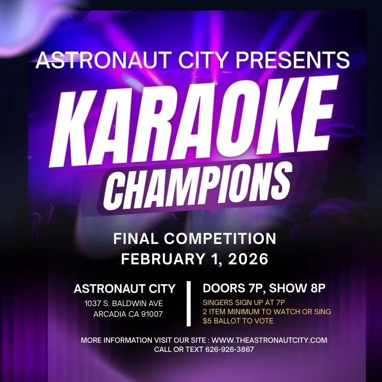 Astronaut City is a new 21+ comedy club and karaoke bar in Arcadia, California that offers beer, wine, and soju. We also have a wide selection of nonalcoholic options such as soda, dirty soda, energy drinks, Kava mocktails, and nonalcoholic beer.