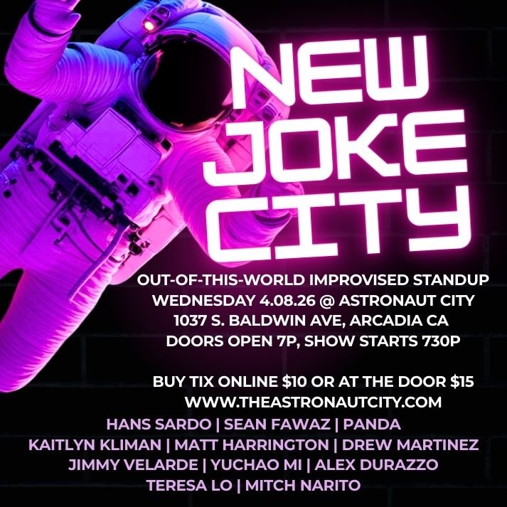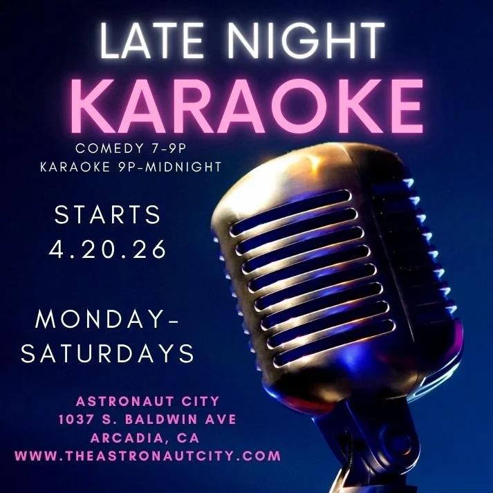 Astronaut City is an intimate comedy club and karaoke bar located in Arcadia, California. It was opened September 2025, and we serve the San Gabriel Valley.