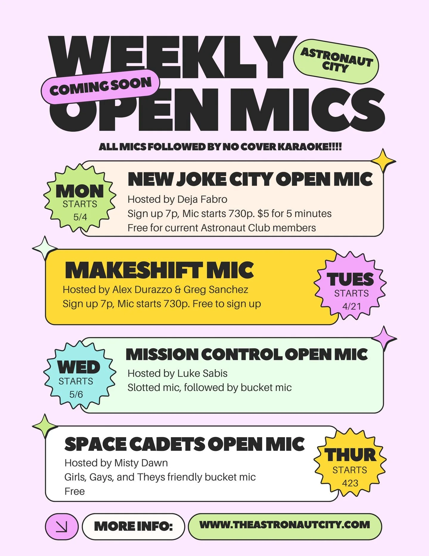 Astronaut City is Arcadiaโs neighborhood comedy club and karaoke bar that takes guests to a new world
