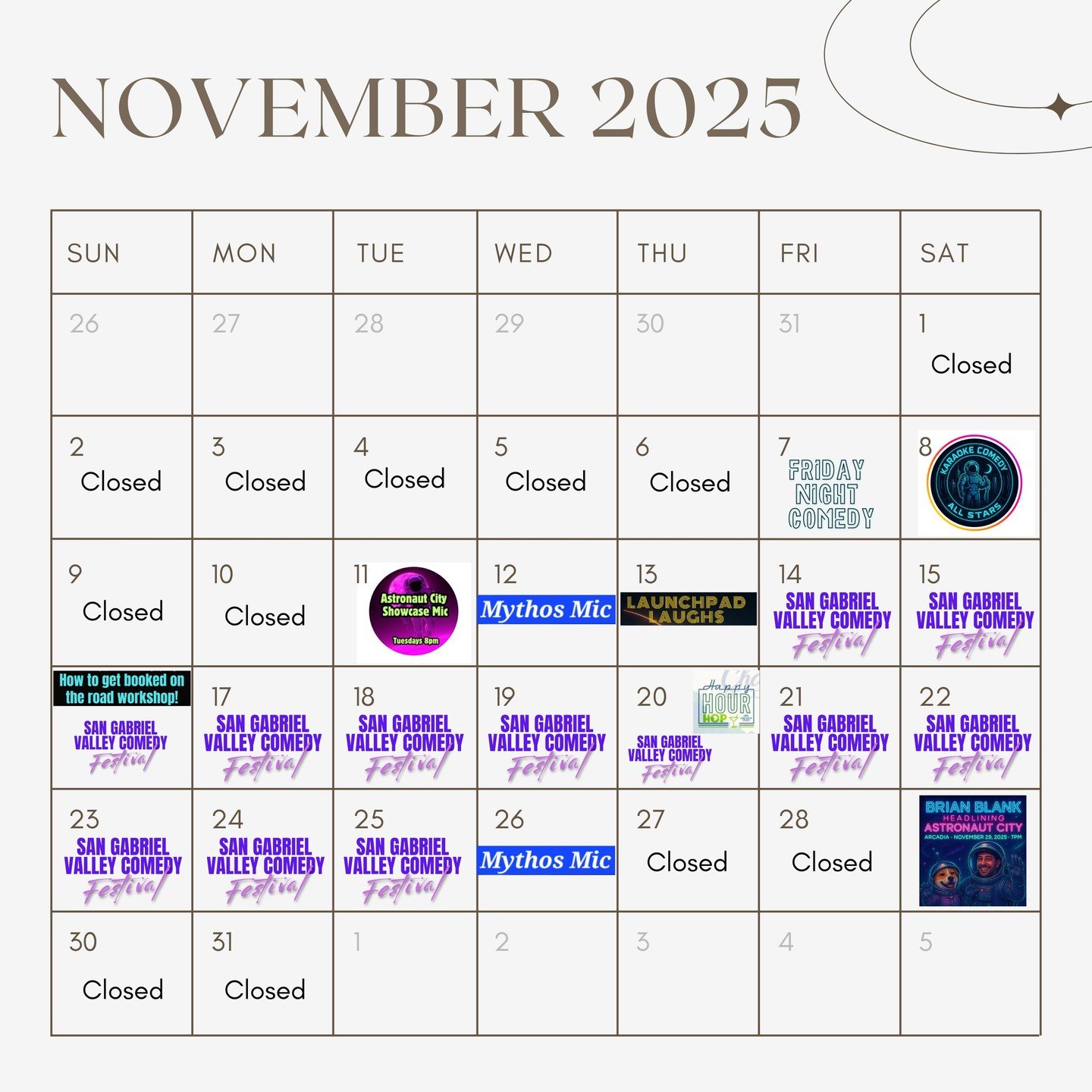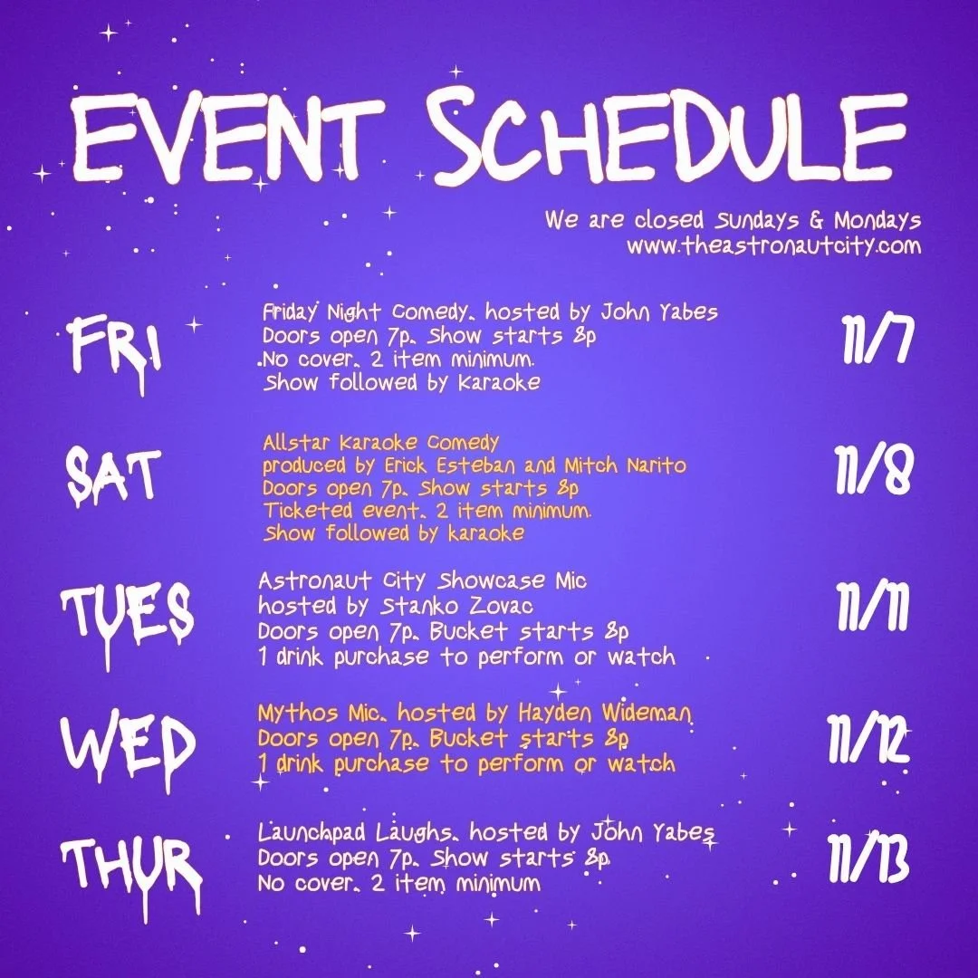 8PM - Astronaut City Showcase Mic @ Astronaut City, Arcadia, CA [Starts September 30, 2025]