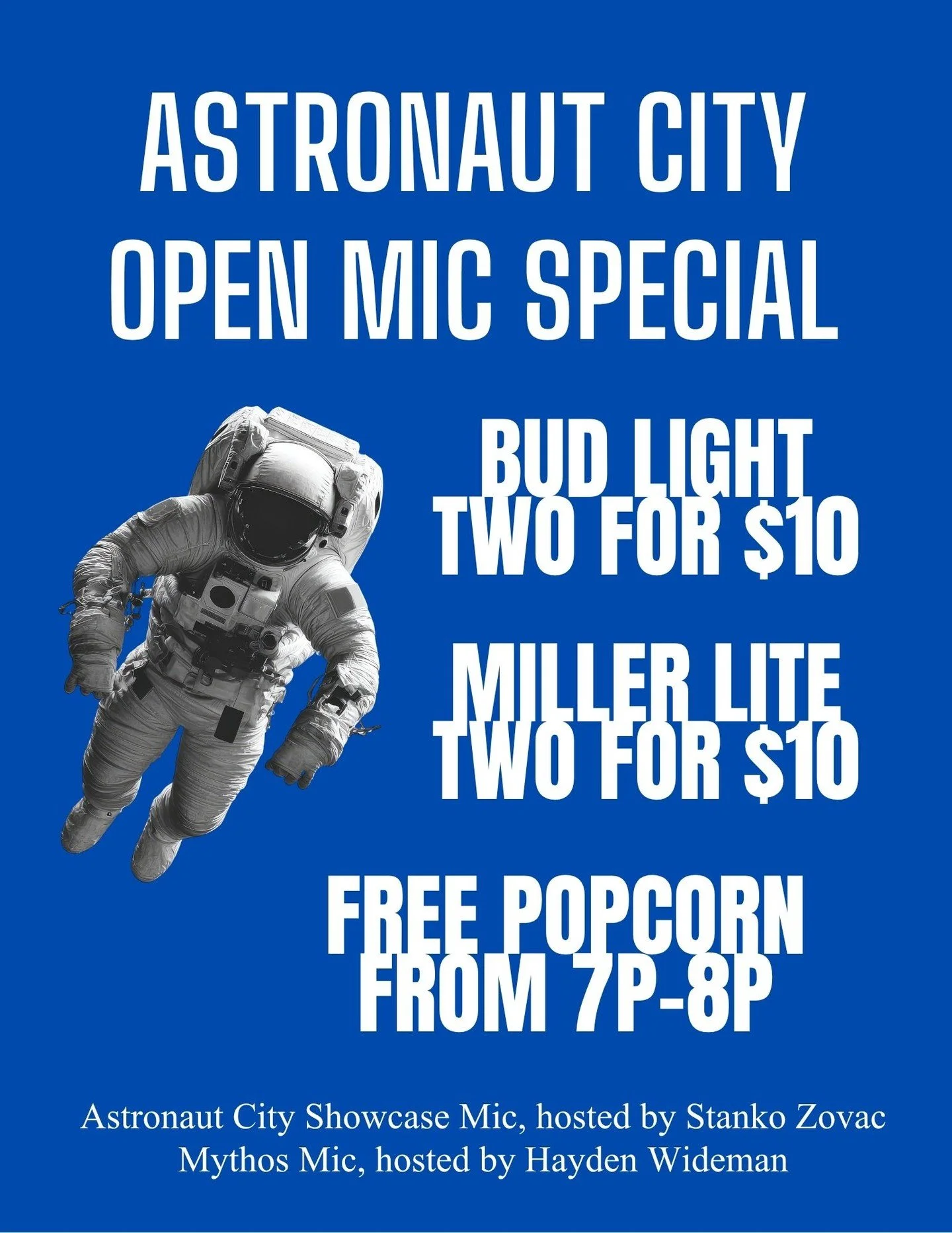 Astronaut City offers weekly open mics, which include: